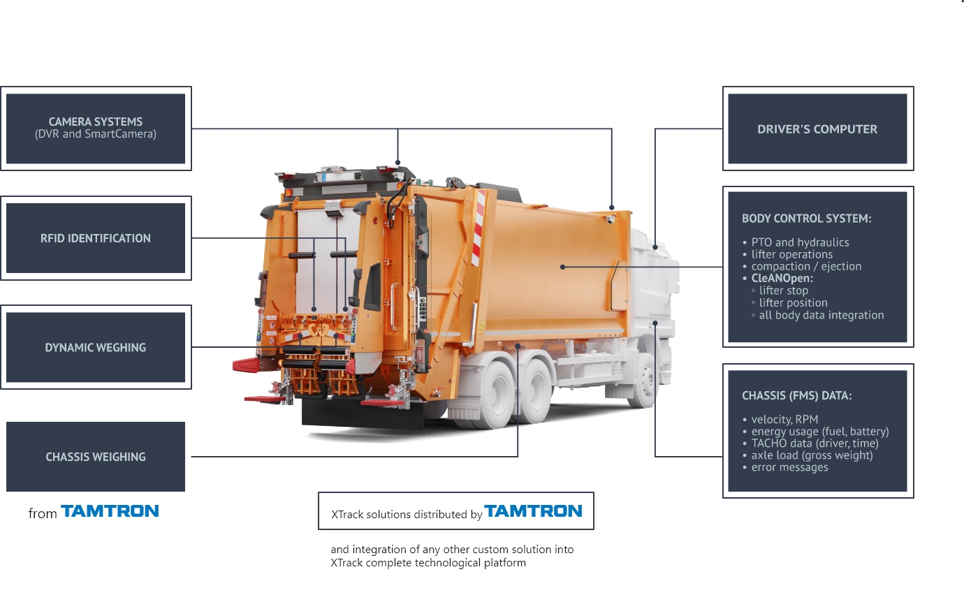 TAMTRON is a top provider of advanced weighing solutions in major industries, including construction, mining, forestry, waste management and recycling, ports, transport and logistics, and process and manufacturing. TAMTRON's top-notch weighing solutions are integrated into XTrack as a key hardware component, forming a comprehensive technological platform for the municipal industry in Poland.